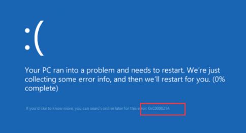 În cazul de ecran albastru cu codul de eroare: 0xC000021A
