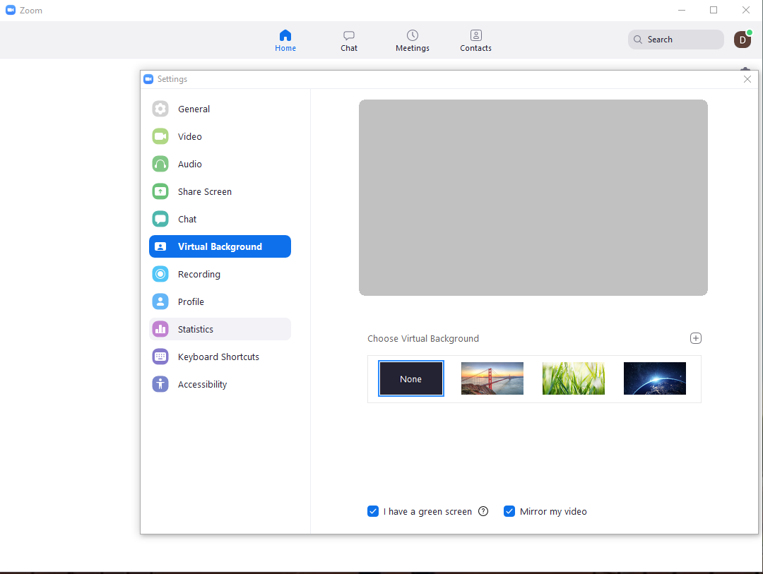 How to Add a Virtual Backround in Zoom Meetings Data 21/04/2020 Autor digulescu gabriel ionut Categorie Soluții 2 529 Configurare noua (How To) SituatieCustomize Virtual Backround Solutie 1.Go to Settings 2.Select Virtual Backround 3.Click on Add Image 4.Choose your backround image and click Open 5.Select your Backround Tip solutiePermanent Voteaza Up Down (17 din 32 persoane apreciaza acest articol) ShareTweetShare Despre Autor digulescu gabriel ionut Solutii Asemanatoare Cum deschidem un RDP in full screen folosind Command Prompt in Windows 10 6 Cum deschidem fereastra Sound folosind Run in Windows 10 0 How to enter text with your voice on a Chromebook 5 Can’t Delete a Windows File or Folder? 3 Top 10 Linux Easter Eggs 2 How to fix – Reading a File: Permission Denied on Linux 1 Leave A Comment? × Cancel Reply Save my name, email, and website in this browser for the next time I comment. eight − = 3