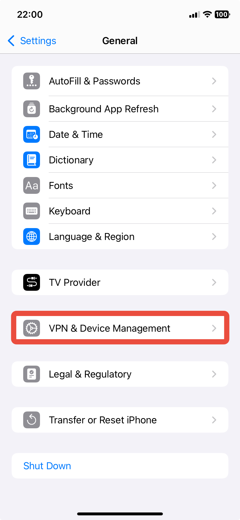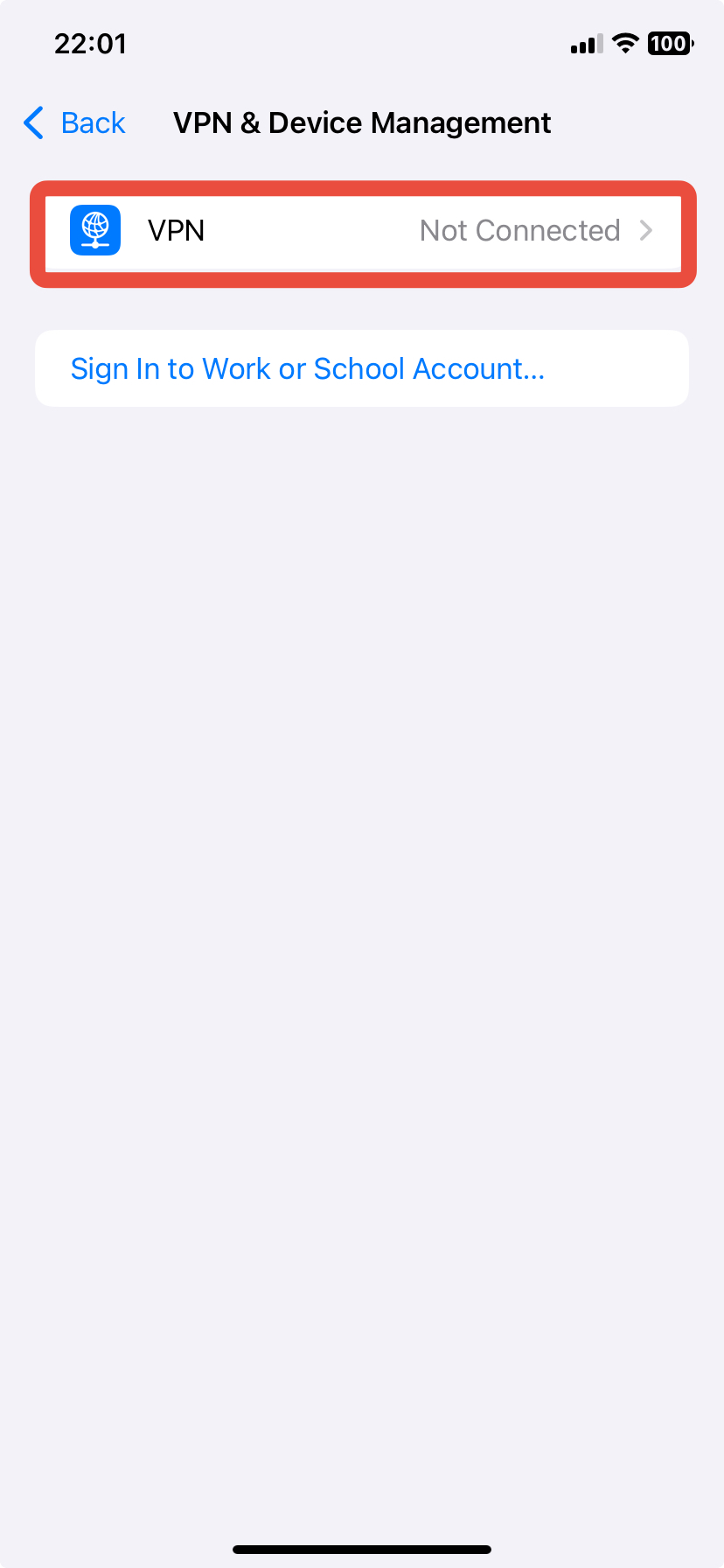 - Select VPN and device management