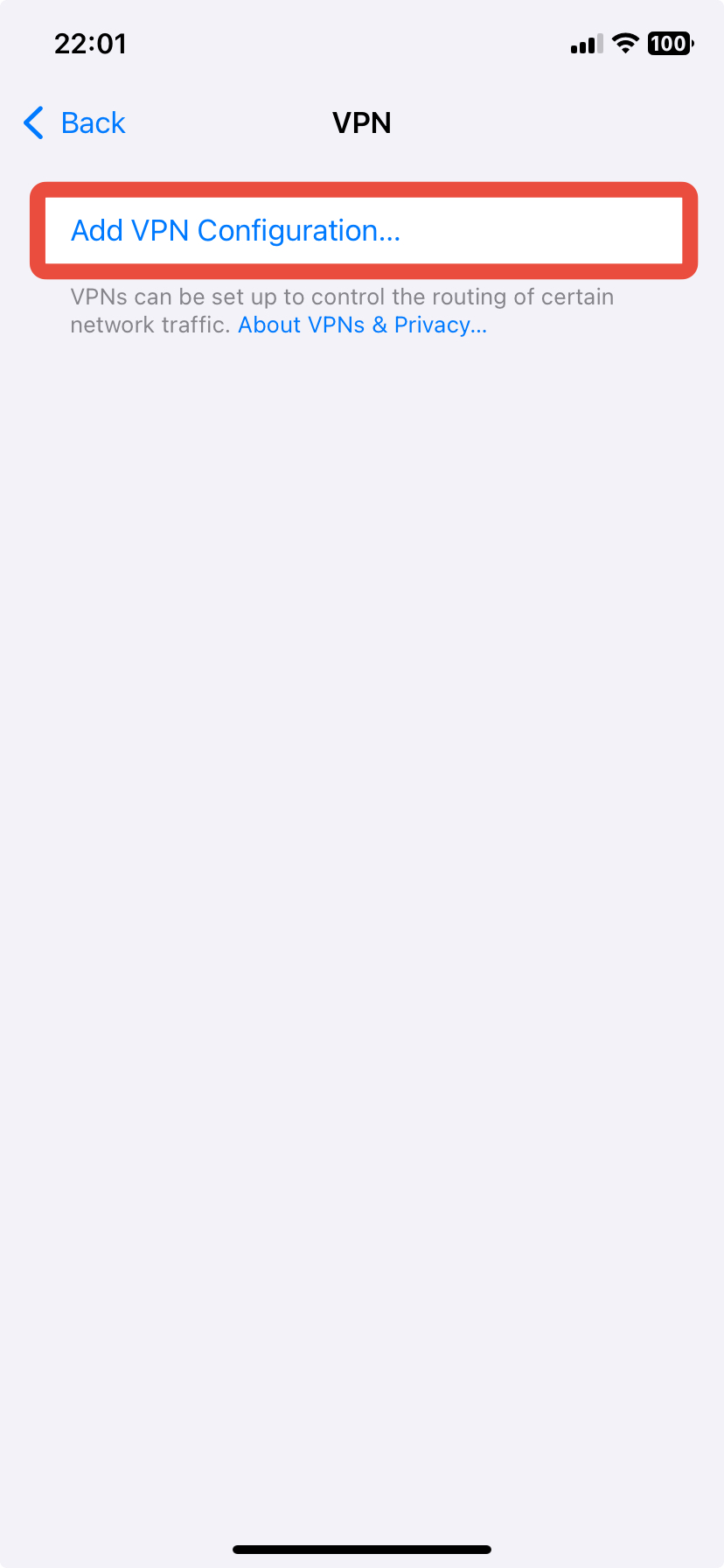 - Tap Add VPN configuration